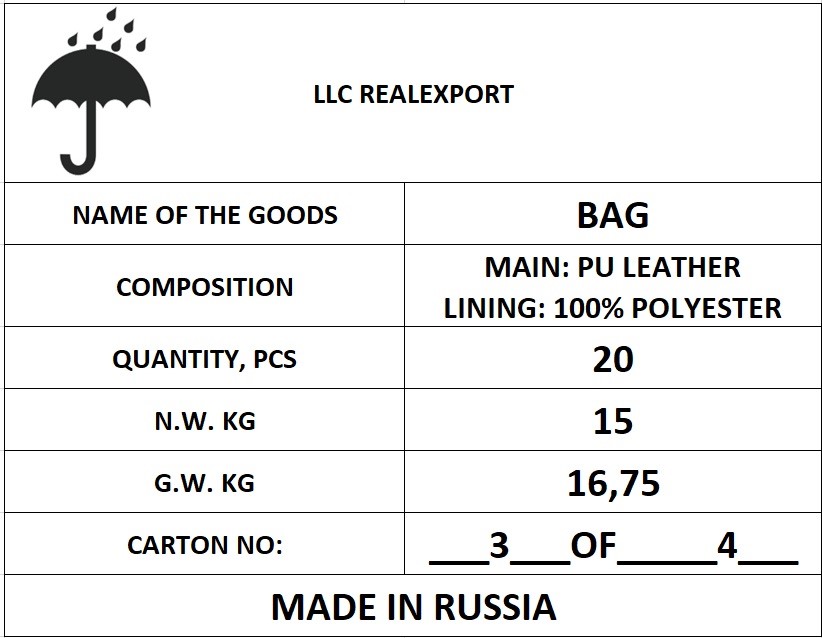 | Дополнительная упаковка и маркировка | 3 000,00 р. |