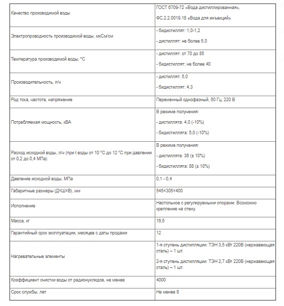 Назначение: получение дистиллированной воды согласно ГОСТ 6709-72 «Вода дистиллированная», ФС.2.2.0019.18 «Вода для инъекций»